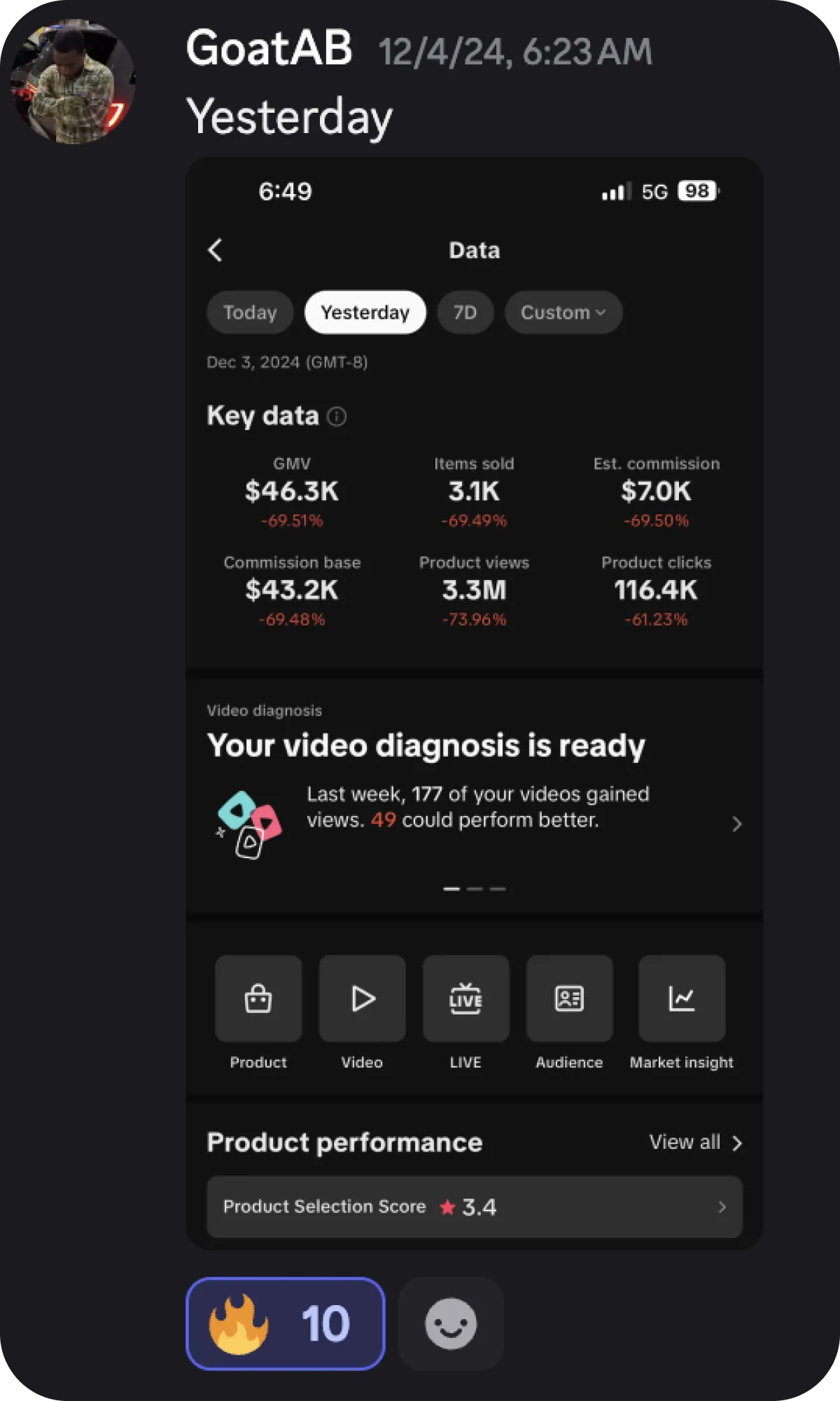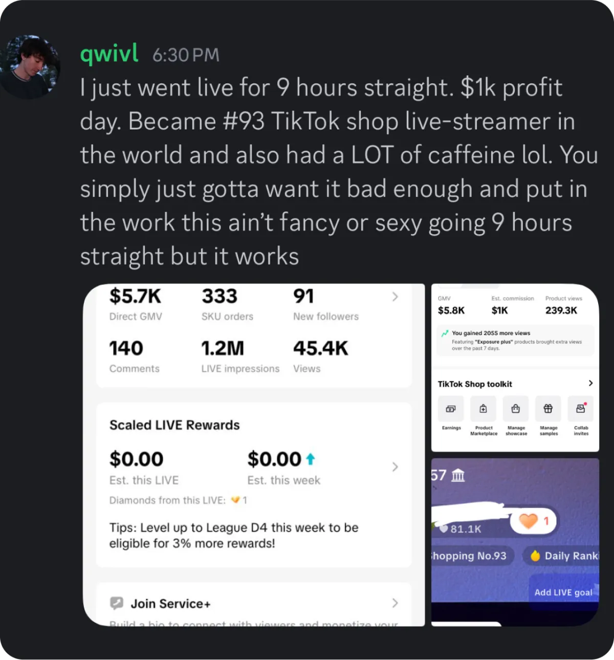 Made $1k profit, ranked #93 TikTok shop live-streamer in 9h.